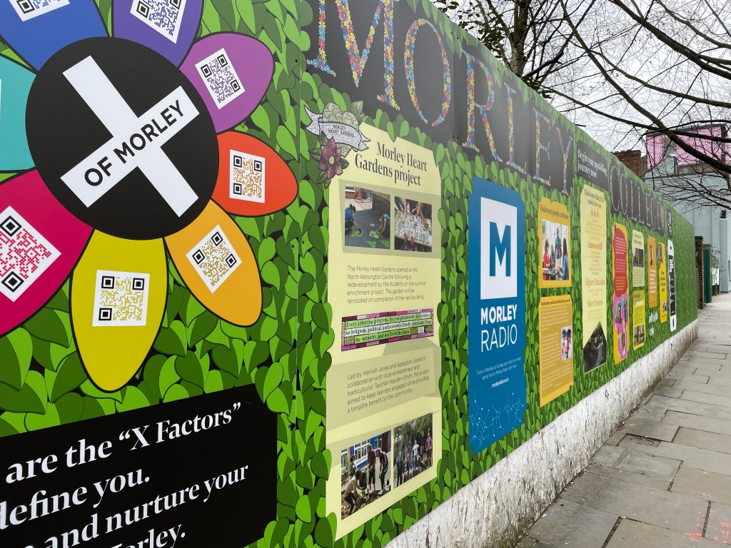 So proud to have had the opportunity to mentor a Kickstart employee, Dino Dallevacche, at Morley College London’s North Kensington Centre for a project to inject some life, brightness and the sense the centre was open for business in the midst of their massive redevelopment project.